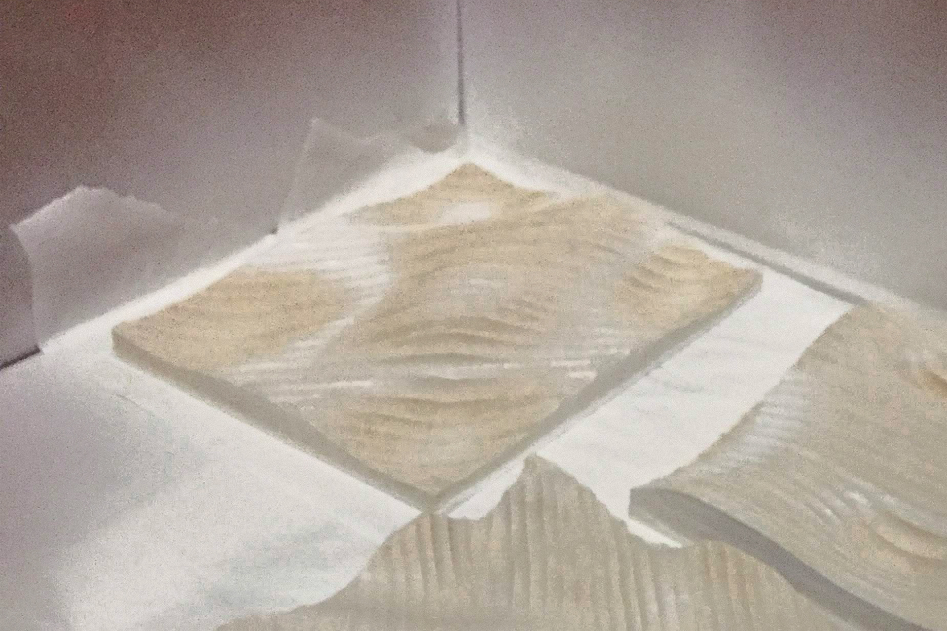 A smooth, undulating surface is given texture using a ball nose end mill passed diagonally over an 8” x 10” block of low-density fiberboard.